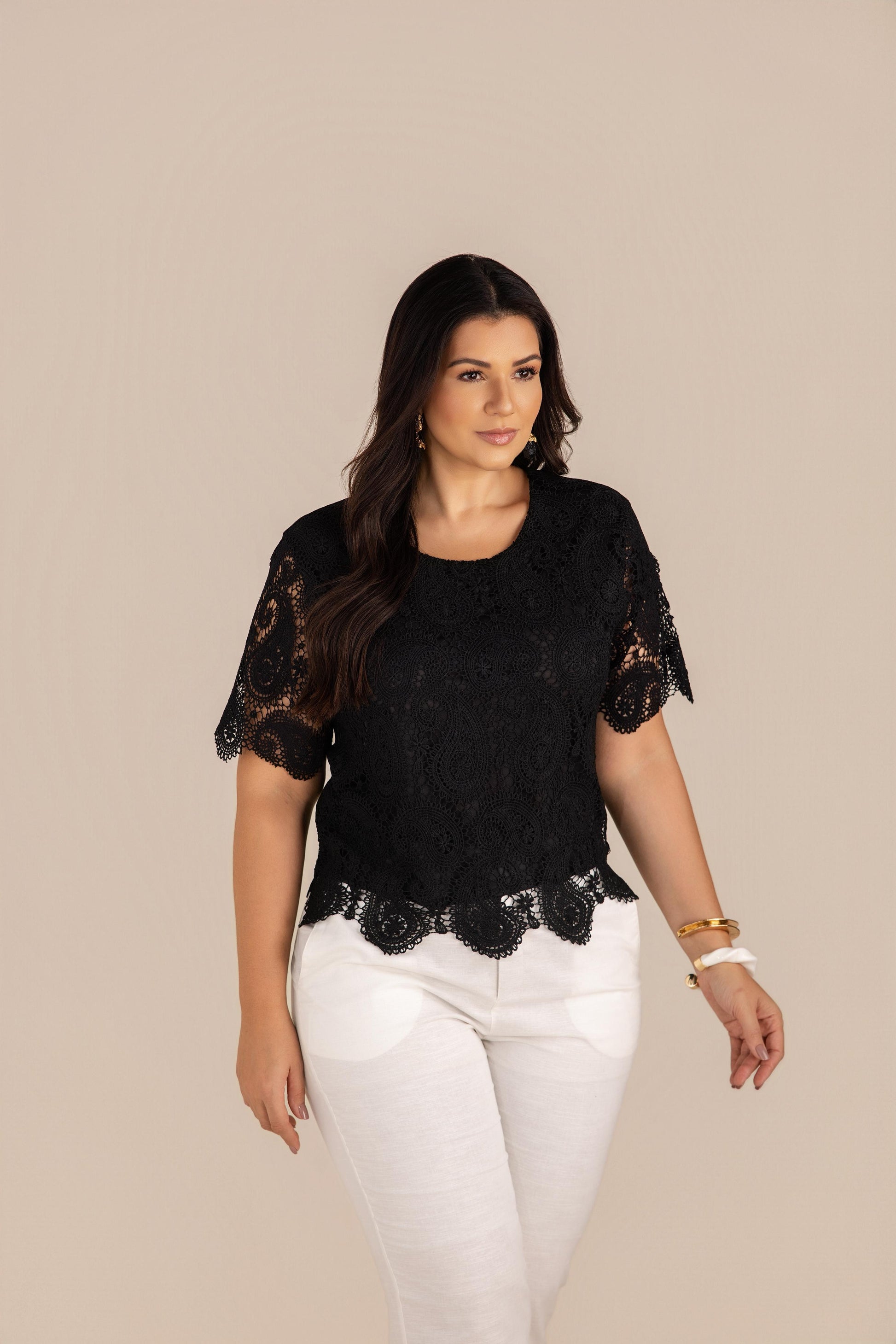 A Blusa de renda é a escolha perfeita para quem deseja adicionar um toque de elegância ao look. Com sua renda delicada, a blusa proporciona um visual sofisticado e feminino. Além disso, o tecido de alta qualidade garante conforto e durabilidade. Adquira já e deixe seu guarda-roupa ainda mais elegante.